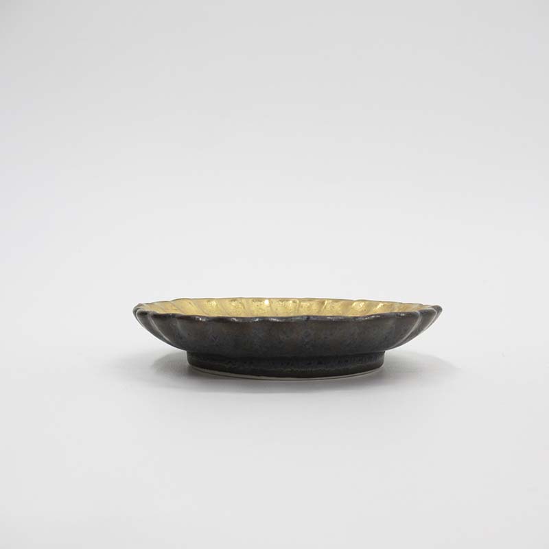 黒柚子金塗 菊小皿