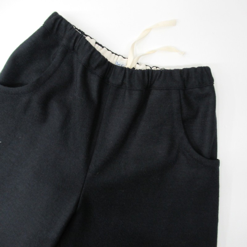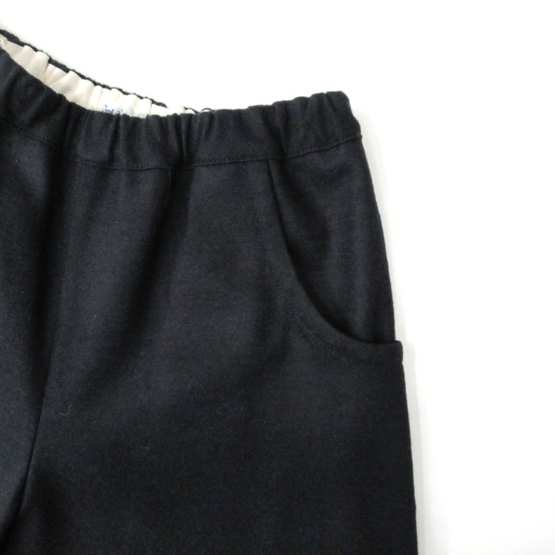 ウエストは総ゴム+紐。デザインサイドポケット付き。裏地付きでスムーズに履いていただけます。