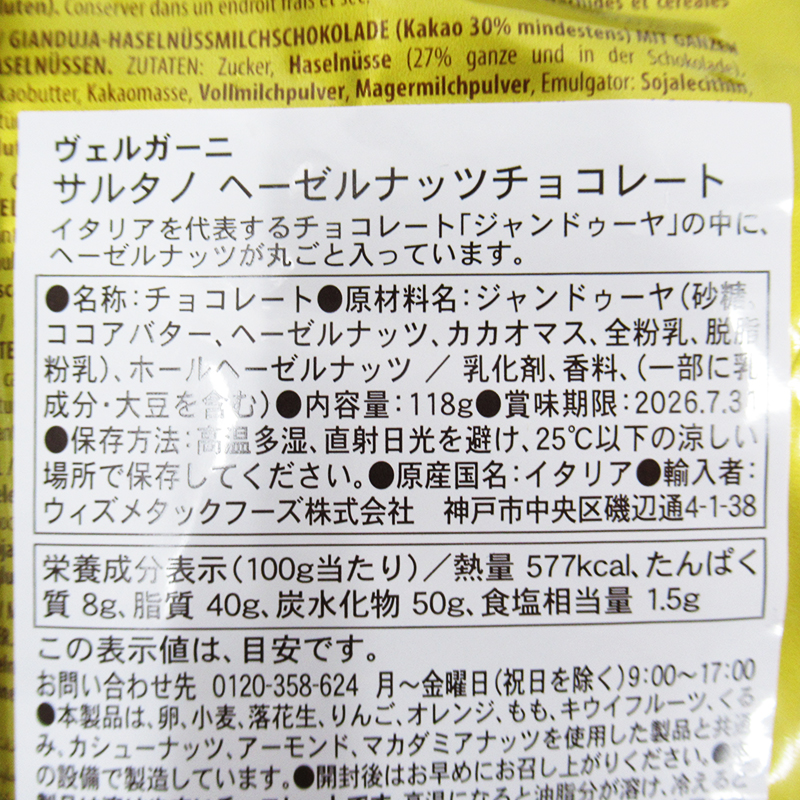 | 備考 | Vergani ヴェルガーニ バラエティ豊かなチョコレートを展開するイタリアの老舗チョコレートメーカー ヴェルガーニは1881年にイタリアで創業されたチョコレートメーカーです。イタリアの定番チョコレートであるジャンドゥーヤ、さまざまなフレーバーがミックスされた人気のチョコレートアソートバッグなどバラエティ豊かなラインナップを展開しております。秋から冬にかけて季節限定で販売しているチョコレートは、お家用あるいは友人へのプレゼントにもぴったりです。ティータイムなどにぜひお楽しみください。 |