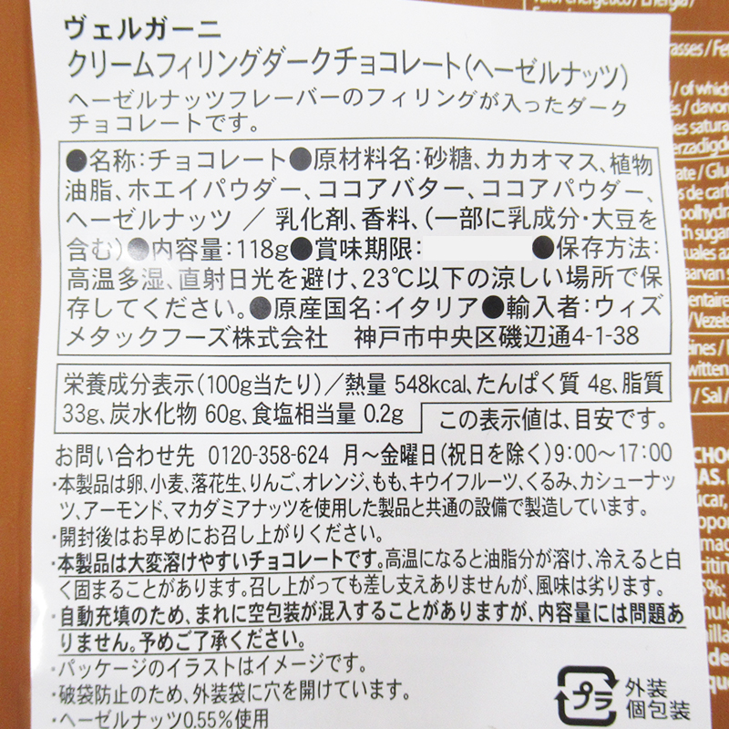 | 備考 | Vergani ヴェルガーニ バラエティ豊かなチョコレートを展開するイタリアの老舗チョコレートメーカー ヴェルガーニは1881年にイタリアで創業されたチョコレートメーカーです。イタリアの定番チョコレートであるジャンドゥーヤ、さまざまなフレーバーがミックスされた人気のチョコレートアソートバッグなどバラエティ豊かなラインナップを展開しております。秋から冬にかけて季節限定で販売しているチョコレートは、お家用あるいは友人へのプレゼントにもぴったりです。ティータイムなどにぜひお楽しみください。 |
