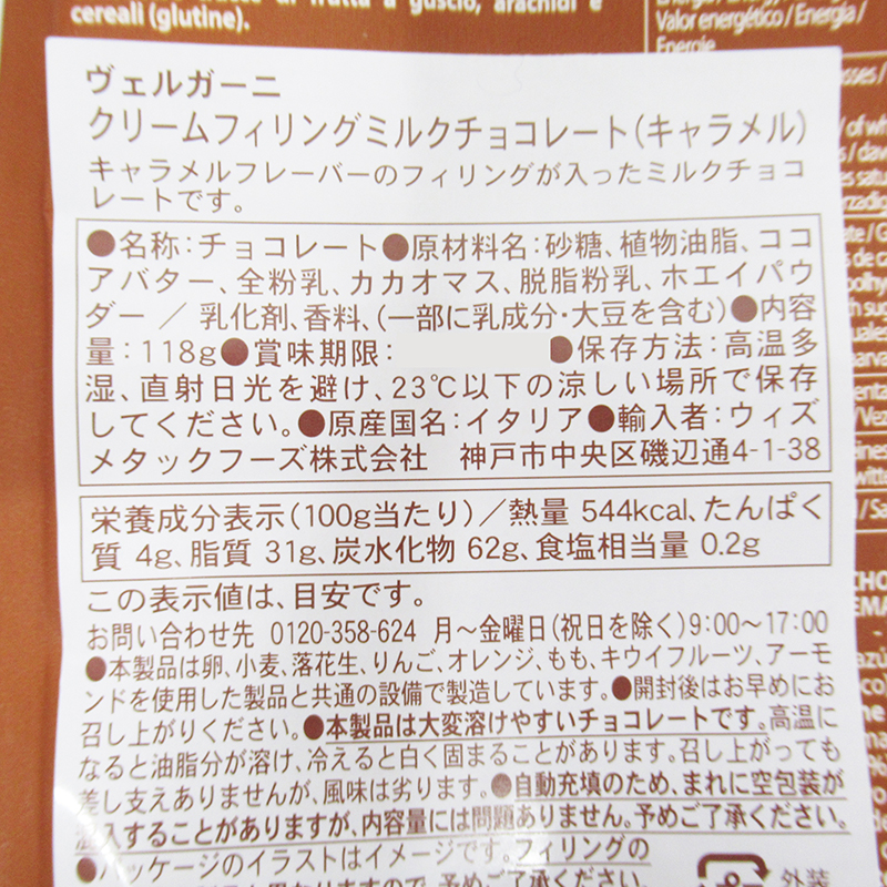 ヴェルガーニ クリームフィリングミルクチョコレート(キャラメル)