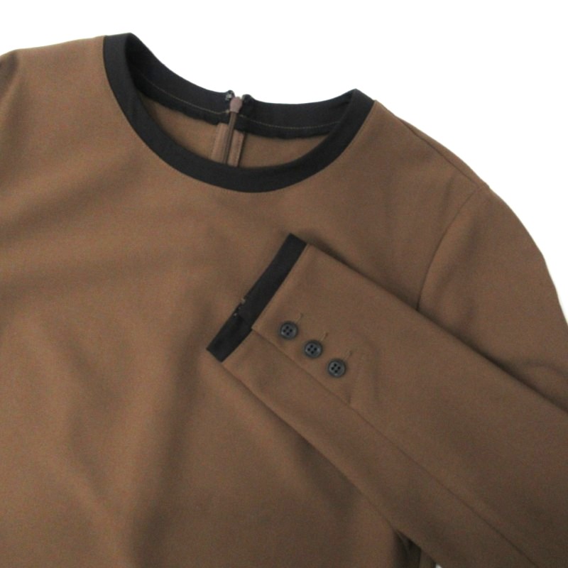 配色と袖口のボタンがアクセントになったクルーネックプルオーバー。