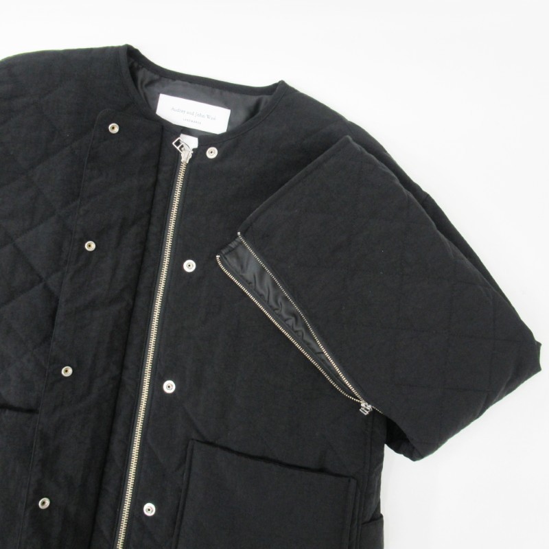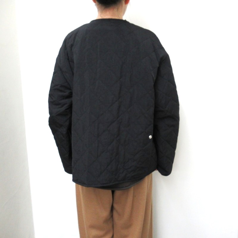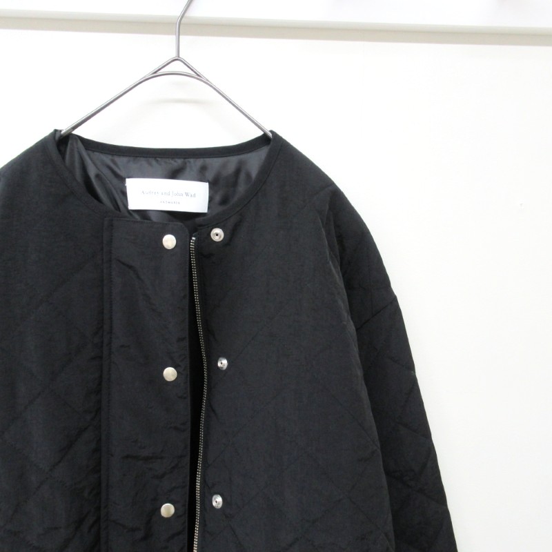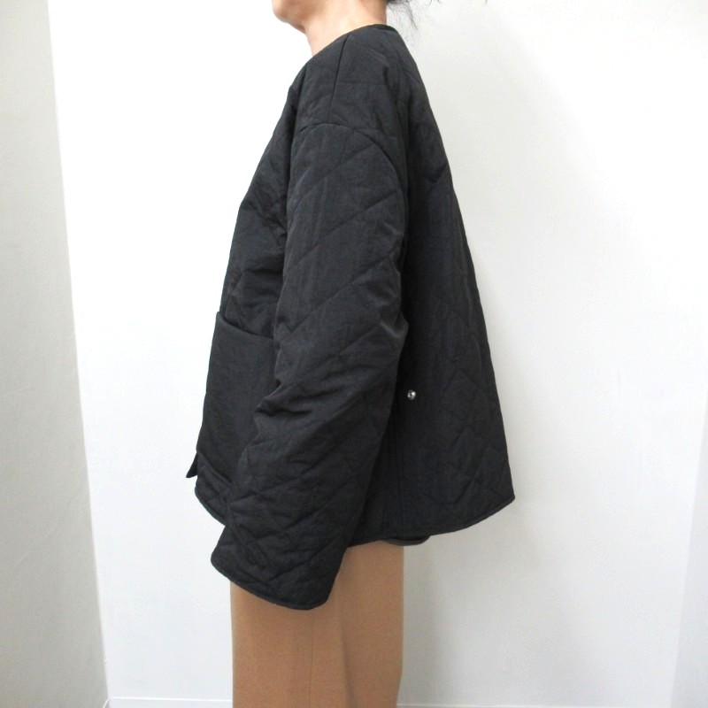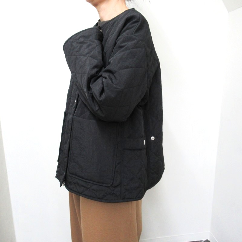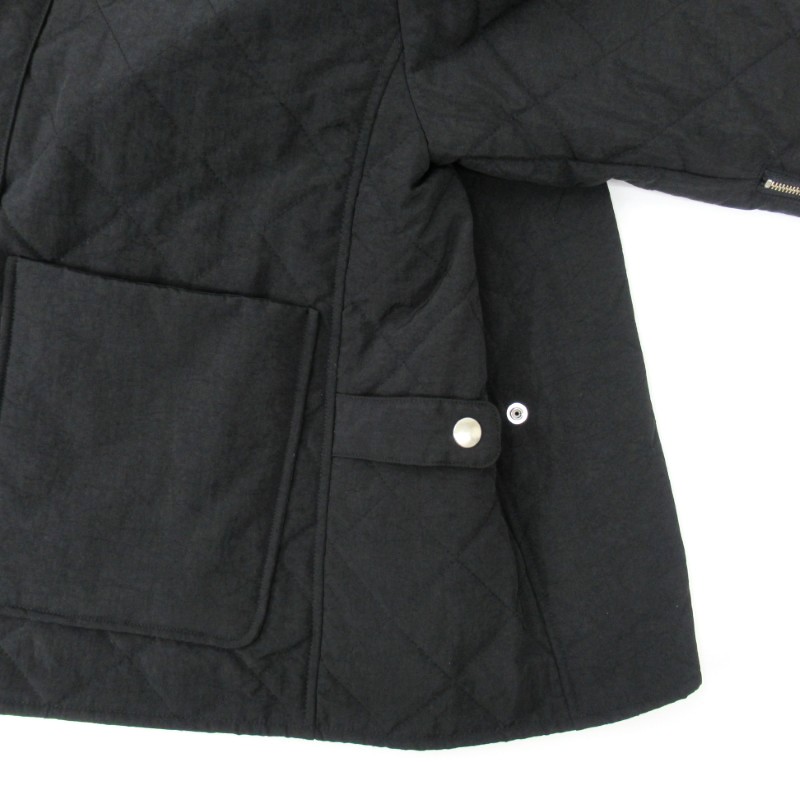 手がすっぽり入る大きさのフロントポケットデザインの中綿入りキルティングブルゾン。