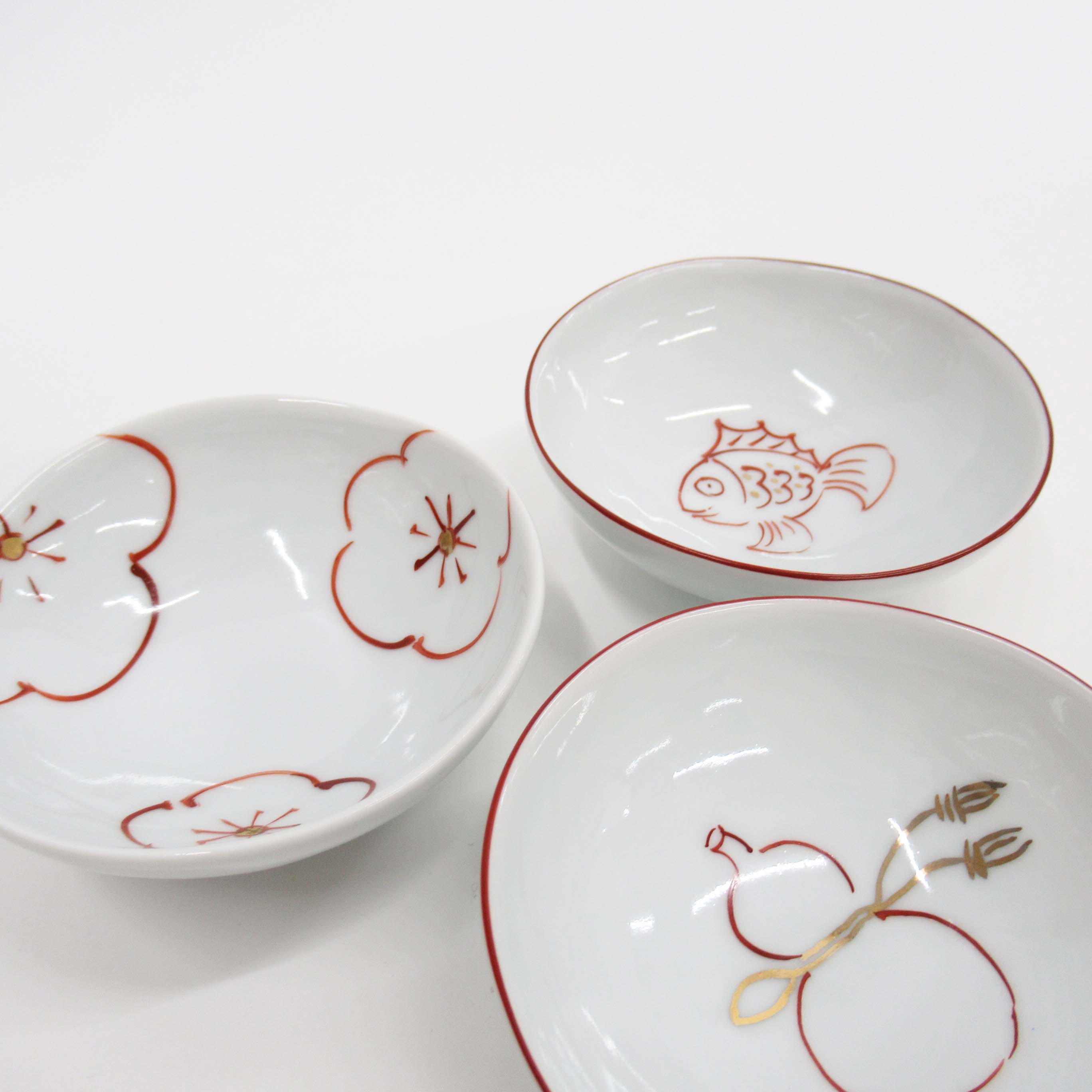 朱と金で描かれた和のモチーフ。職人さんの筆遣いで、それぞれ個性が感じられる絵柄となっております。
