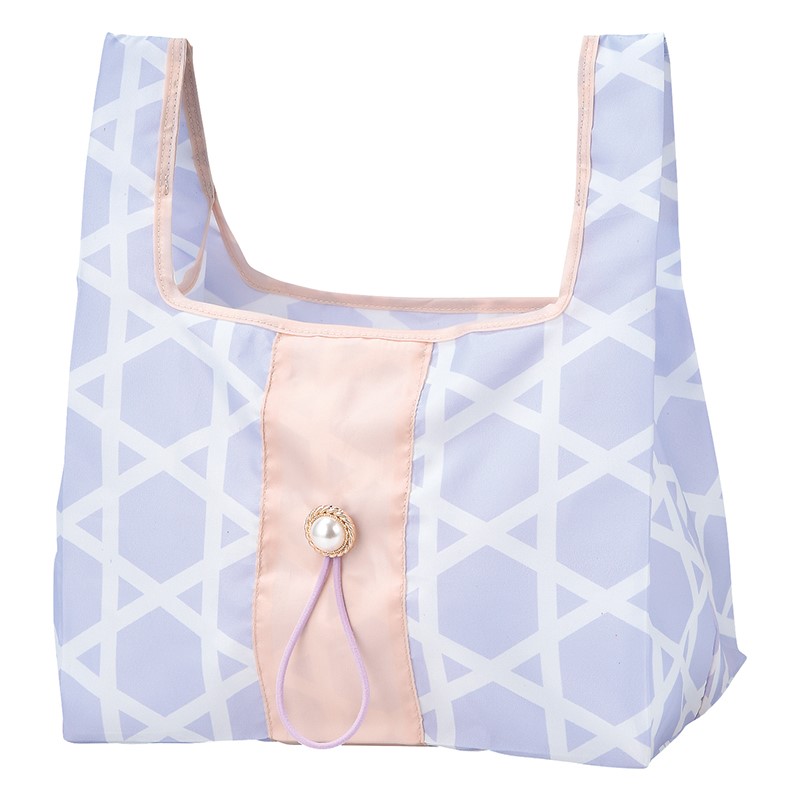 さっと取り出せて、くるんとゴムで巻いて簡単に収納できるモダンなエコバッグです。小ぶりでも広いマチで、コンビニのお弁当なども傾かずに入ります♪パッケージは中身が見え、和装の女の子のデザインに、ボタンとカラーゴムが帯留め風になっています。