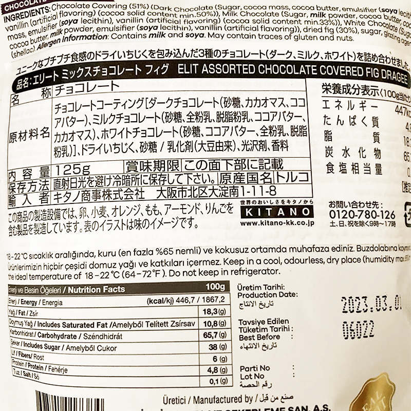 ドライフィグ(いちぢく)をミルク・ダーク・ホワイト3種のチョコレートでコーティング。濃厚なフィグとチョコレートの甘みがかさなり上品な味わいに。