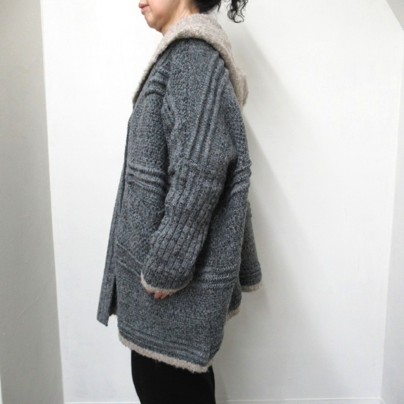 部分部分で切り替えられた編地は表情があり、アウターとしてもおススメです。