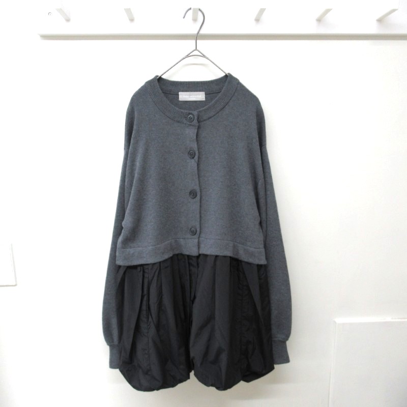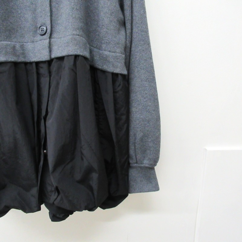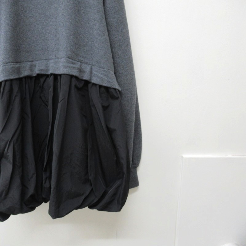 ギャザーがたっぷり入った布帛部分はフェミニンな印象を与えつつもブラックカラーのナイロン素材が甘さを抑えたデザインです。
