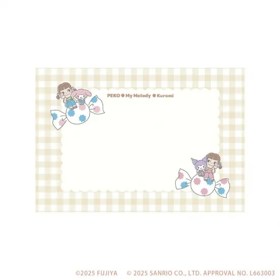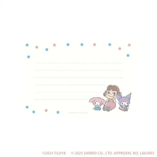 | 備考 | ©2025 FUJIYA ©2025 SANRIOCO.,LTD.APPROVAL NO.L663003 仲良しな雰囲気と、特別感あふれるデザイン! 株式会社サンリオのキャラクターとペコちゃんが仲良くおそろいに! ペコちゃんと同じ表情をまねっこしている姿が、とってもキュート。 仲良しな雰囲気と特別感あふれるデザインで、見ているだけで笑顔になれるコラボシリーズです。 |