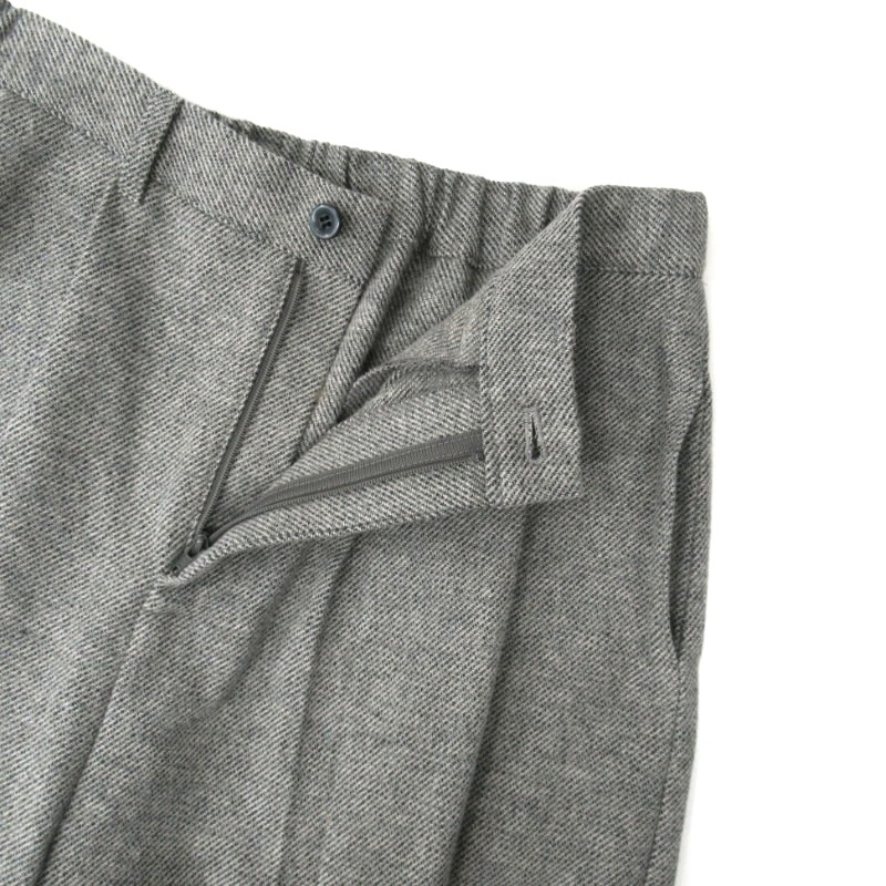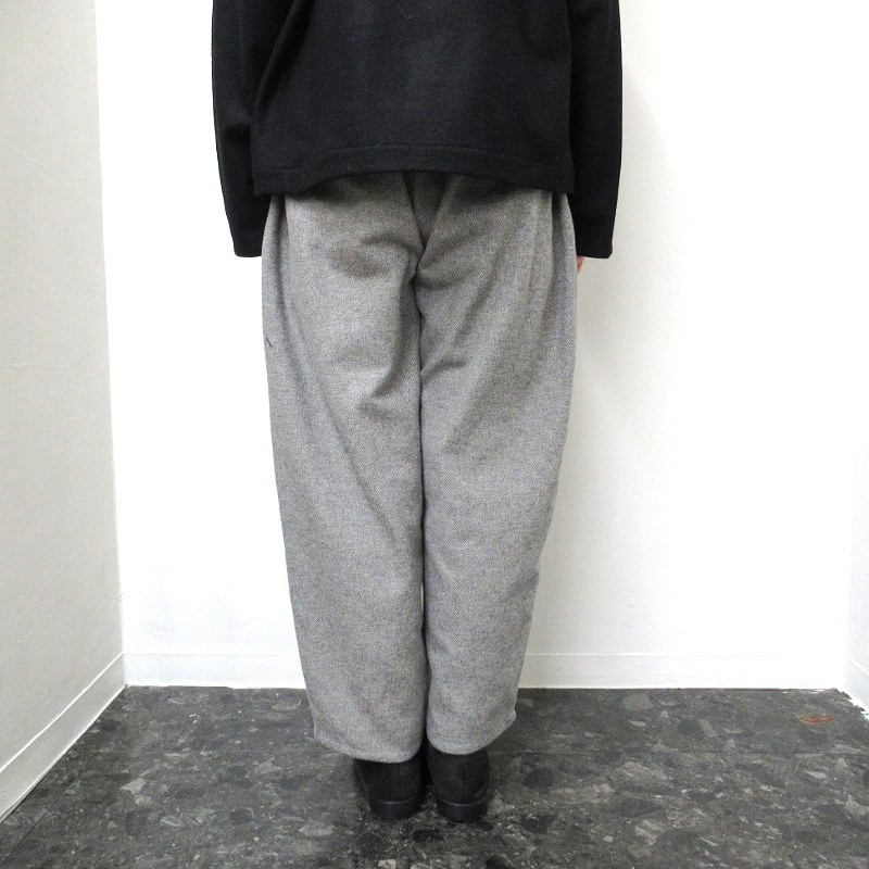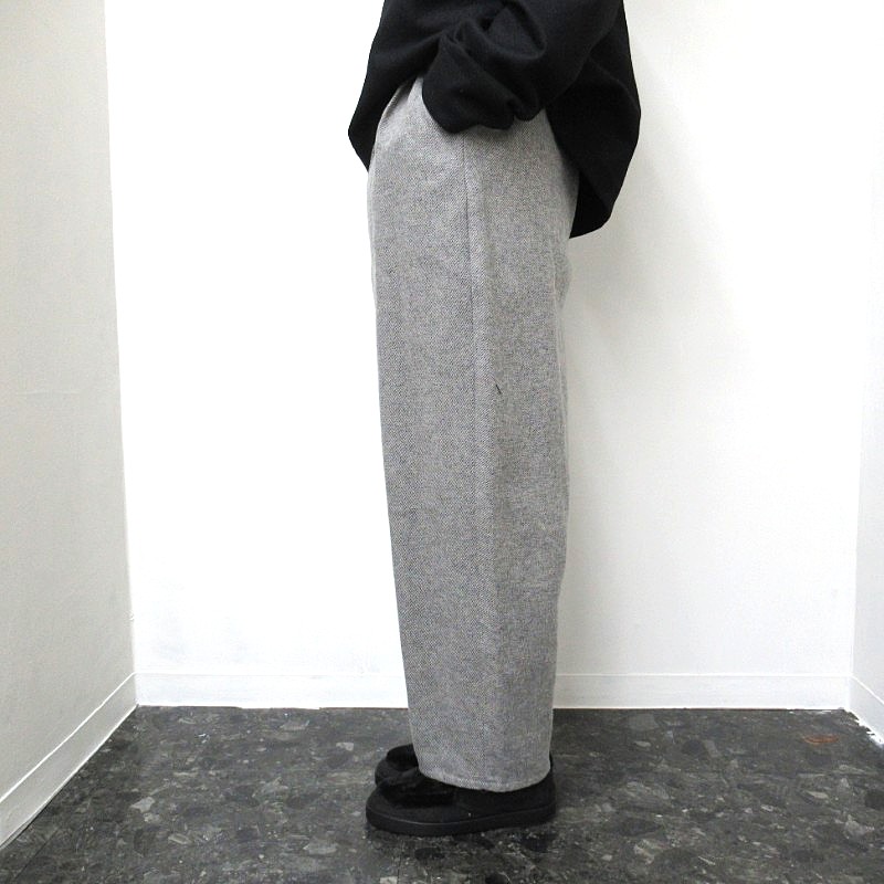 起毛がかけられた、やさしい肌触りのタックパンツ。