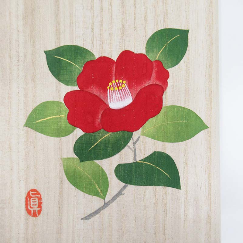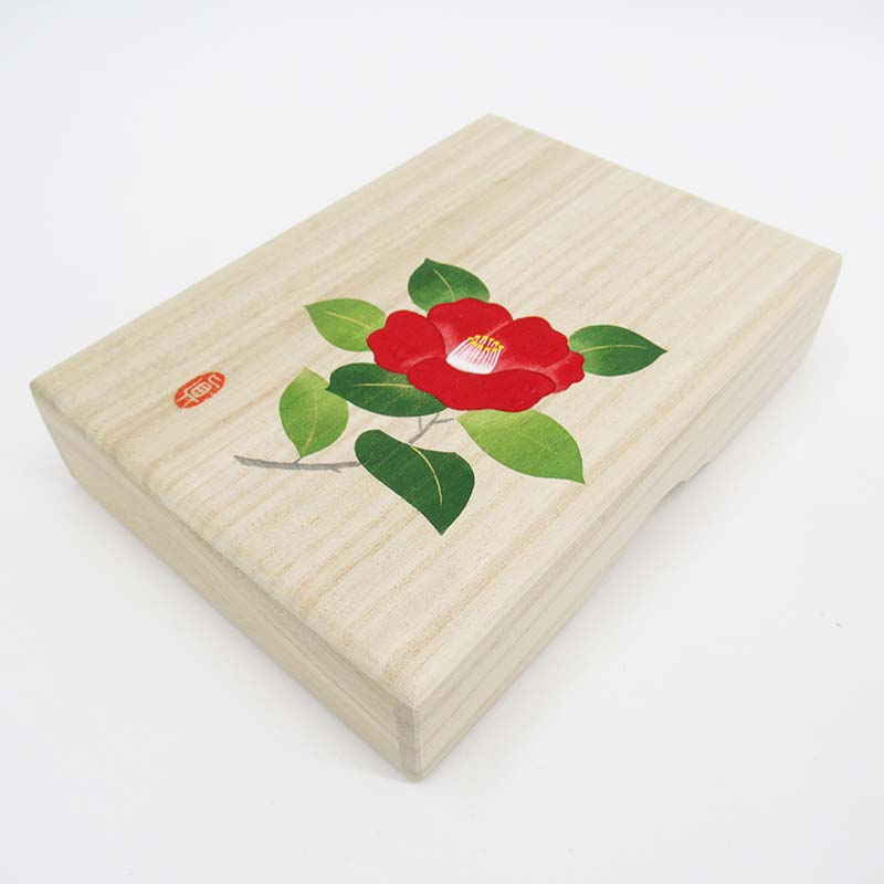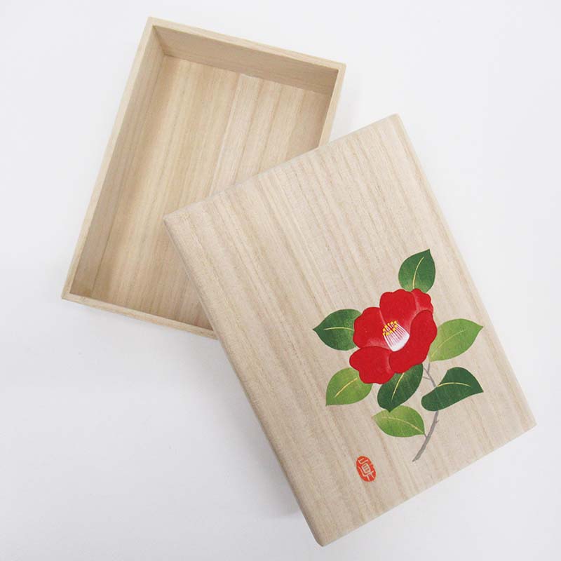 手描きで水仙が描かれた、はがきサイズの桐箱です。