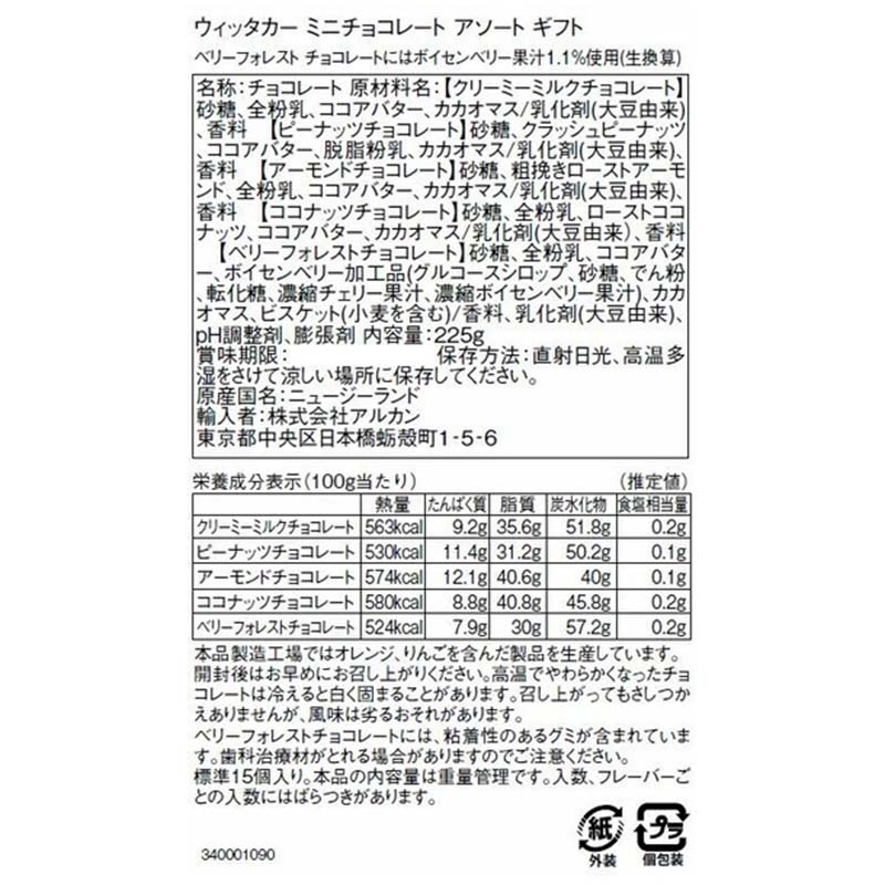 | 備考 | イギリスで菓子職人として働いていたJames Henry Whittaker’sが1890年にニュージーランドへ渡り、チョコレート製造を始めました。1896年には首都ウエリントンに移り、以来家族代々でプレミアムチョコレートを生産しています。“Beans to Bar”ニュージーランドで唯一のカカオ豆の仕入れから完成までの全工程を自社で行っている、ニュージーランドの国民的チョコレートです。 |