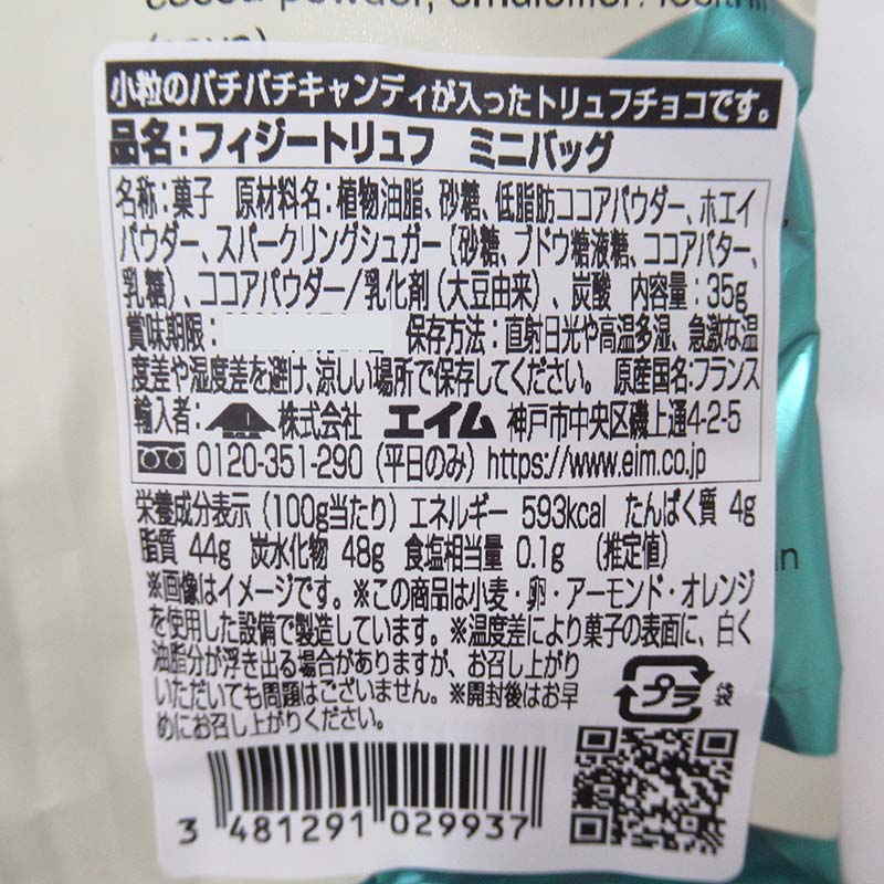 小粒のパチパチキャンディが入ったトリュフチョコです。