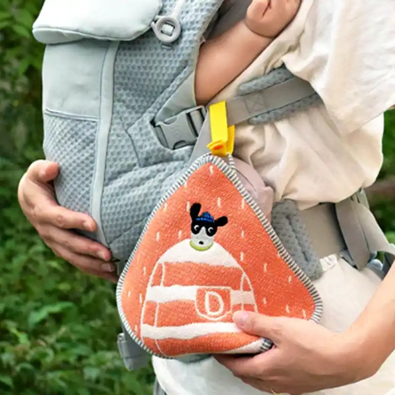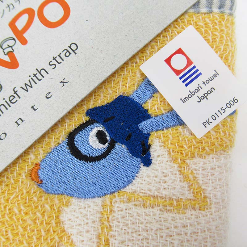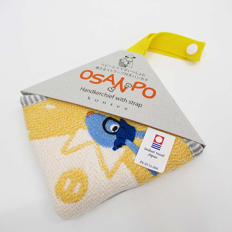 お子さまも持ち歩きしやすいサイズ感でストラップ付なので、ベビーカーや抱っこひもにも取り付けられます。 ニットのような厚手の生地で、高品質ながら毎日気兼ねなく使えるコットン100%のハンカチです。