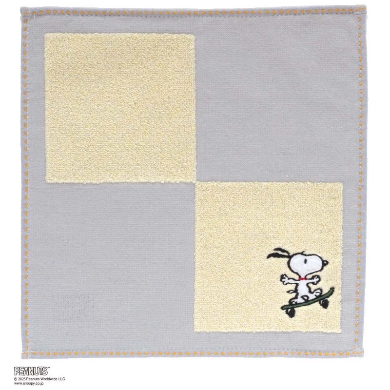 PEANUTS タオルハンカチ スケボー刺繡/GY