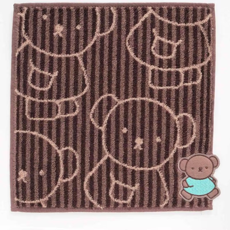 ミッフィーの絵本に登場するくまのボリスを全面とアップリケ刺繍がポイントのタオルハンカチです。
