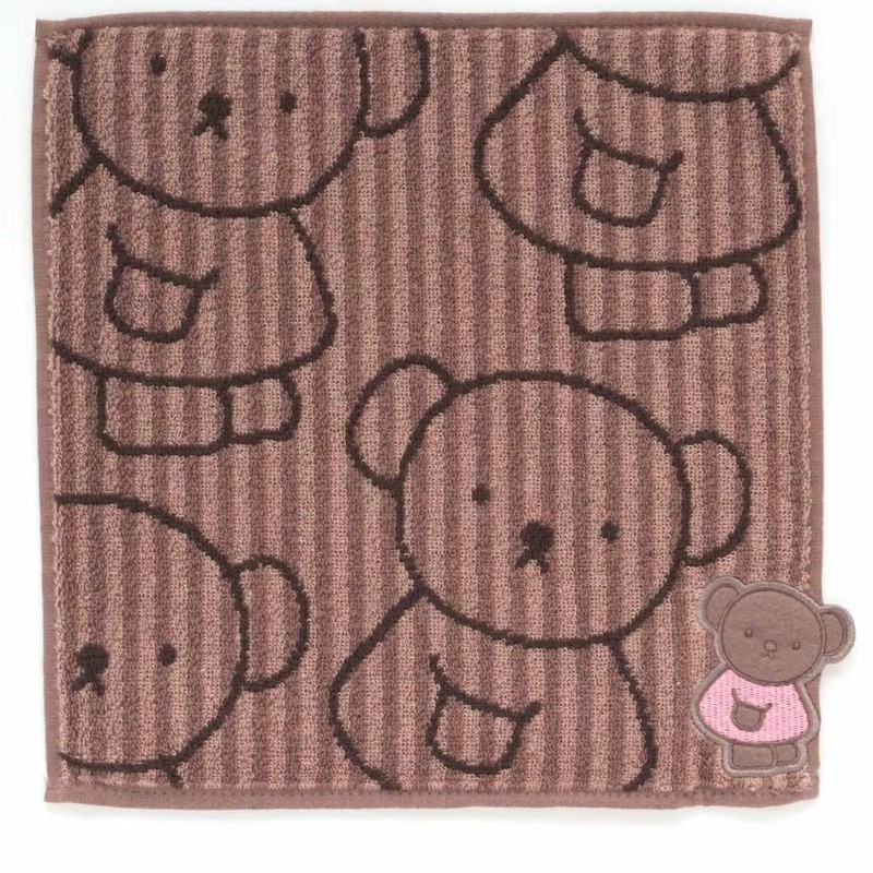 ミッフィーの絵本に登場するくまのボリスを全面とアップリケ刺繍がポイントのタオルハンカチです。