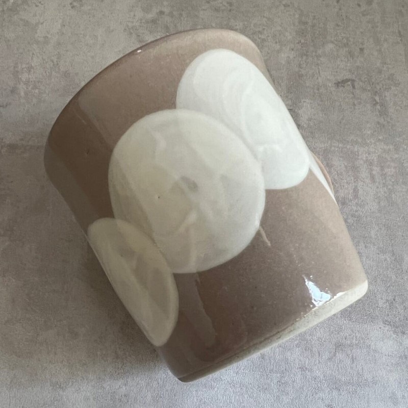 優しい色合いの本体に、筆の跡が残るように、職人さんが丸の模様を一つ一つ丁寧に描かれています。