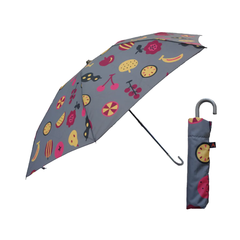 Atsuko Matano アツコ マタノ レトロなプリント折りたたみ雨傘 /グレー