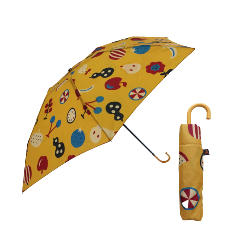 Atsuko Matano アツコ マタノ レトロなプリント 折りたたみ雨傘/イエロー