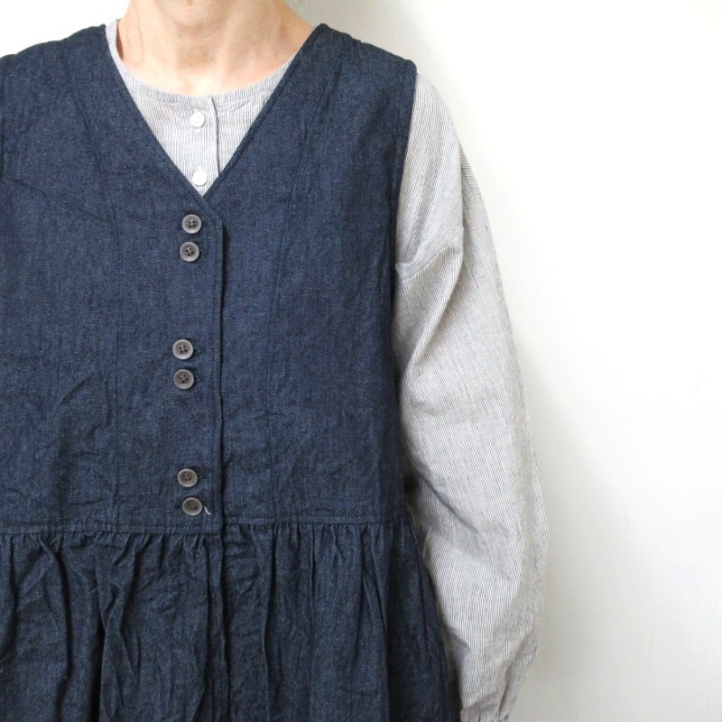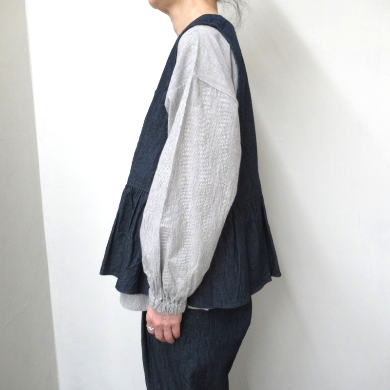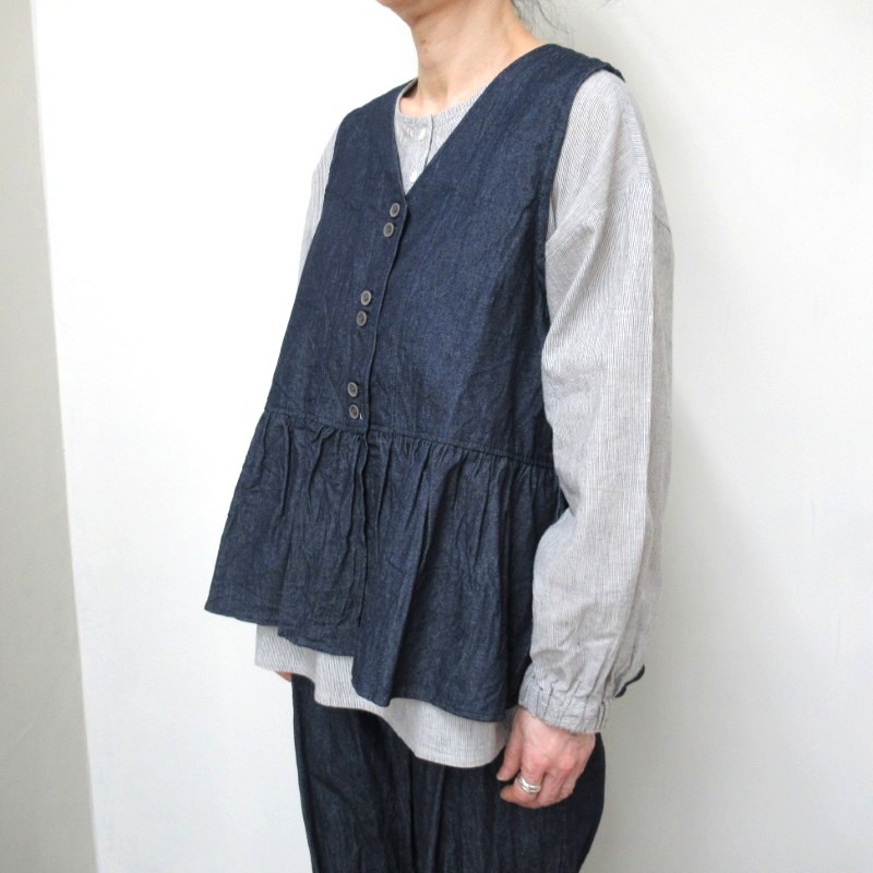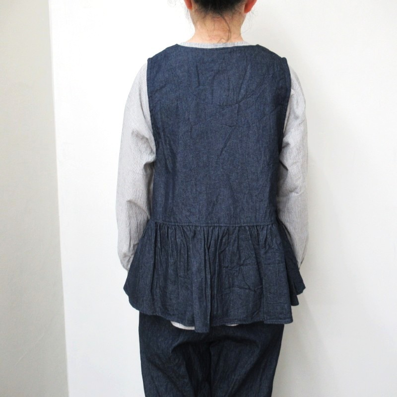 ina ウエスト切替ギャザーベスト /デニム73 【日本製】