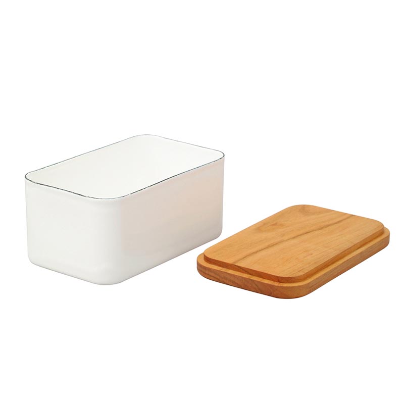 においうつりがなく、冷却性の高いホウロウは、冷蔵庫で保存して、使うときは室内に出す、バターの保存に最適です。天然木(サクラ)蓋で、インテリア性にも優れているので、食卓にそのまま出して使えますね。