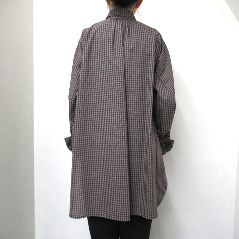 ロング丈のチェックシャツ。