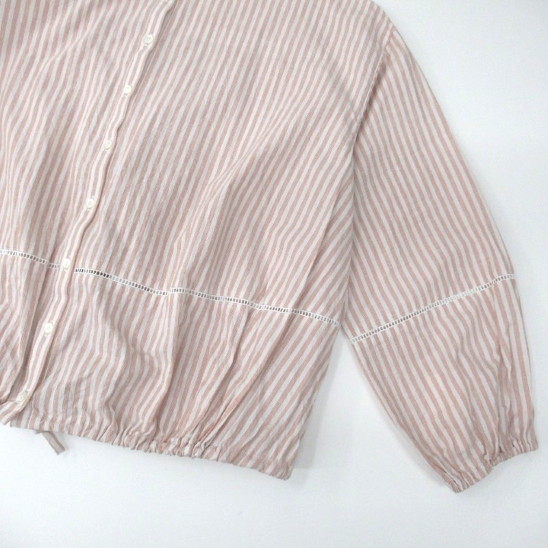 ina ハシゴレース使い裾ひもブラウス /OFF×RDストライプ30 【日本製】