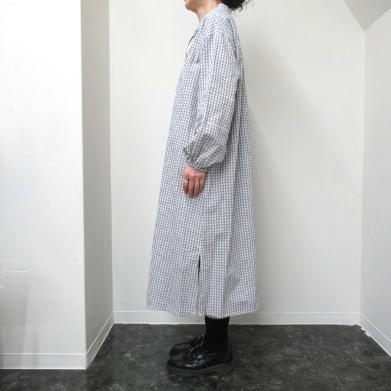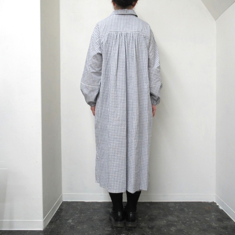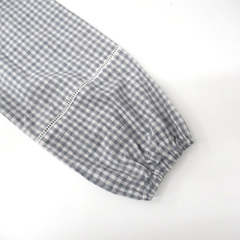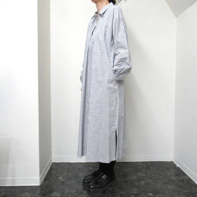 ina 袖・後ろヨークハシゴレース使いワンピース /OFF×NVチェック 【日本製】