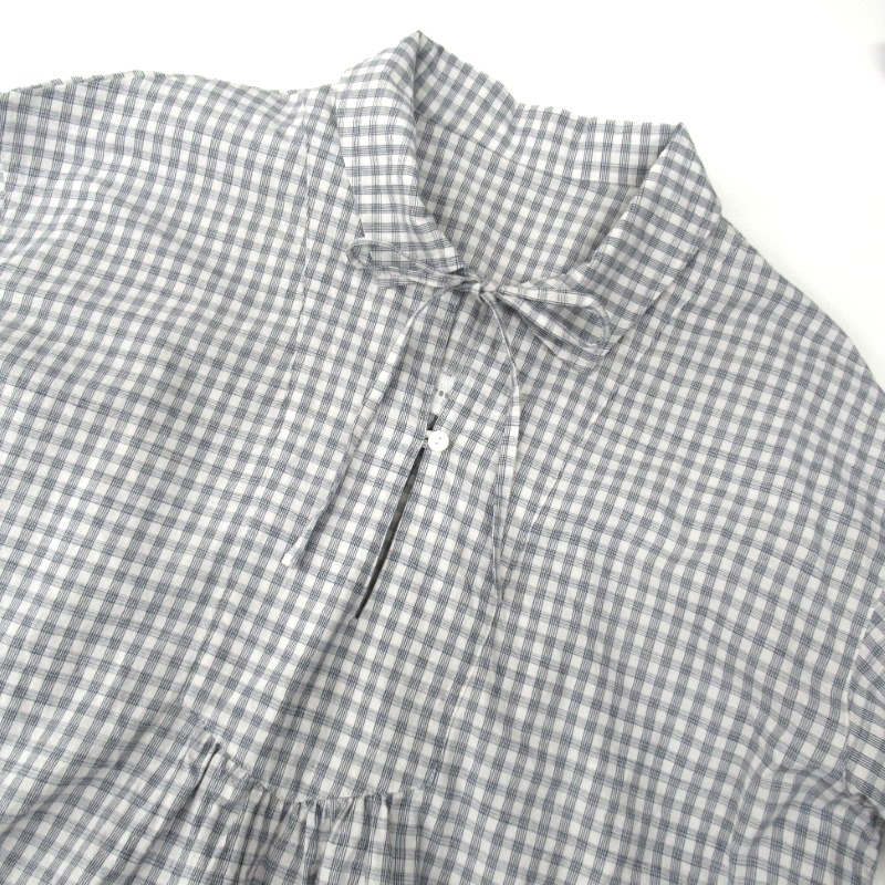 ギャザーや衿のリボンがフェミニンな雰囲気。レイヤードした時も動きやすいスリット入りです。