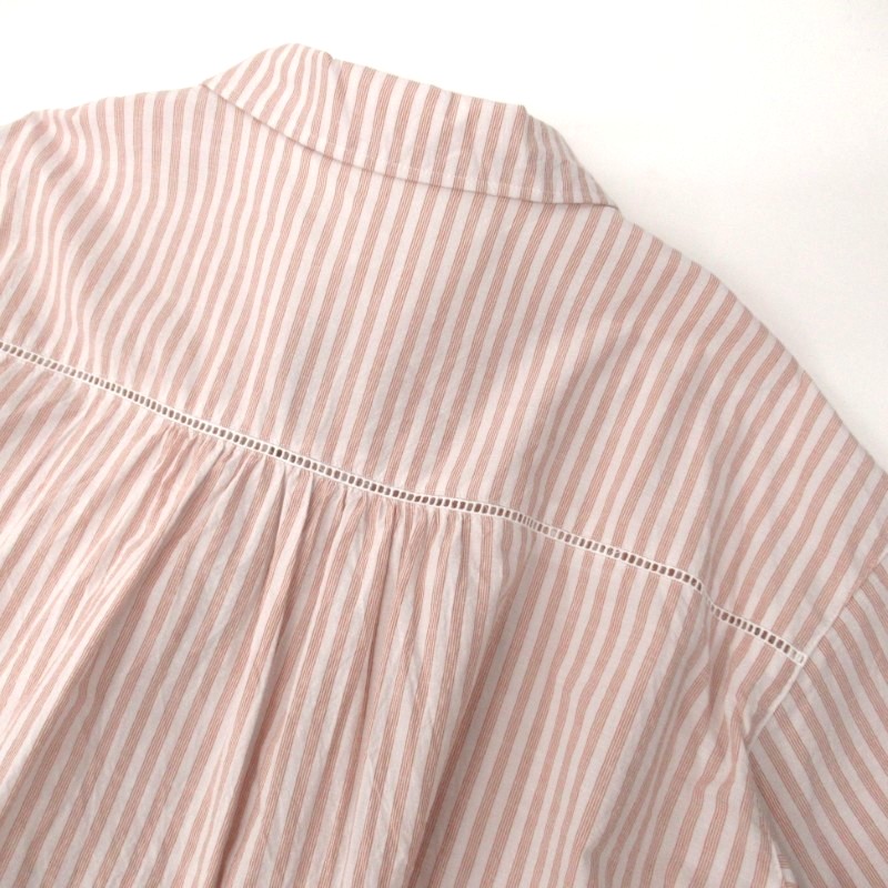 ギャザーや衿のリボンがフェミニンな雰囲気。レイヤードした時も動きやすいスリット入りです。