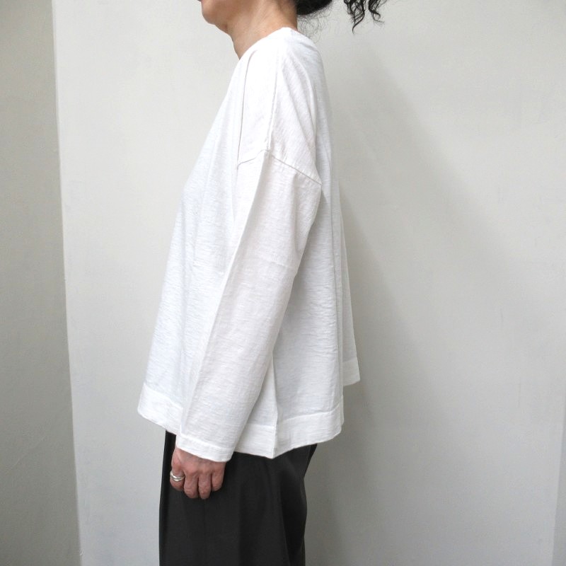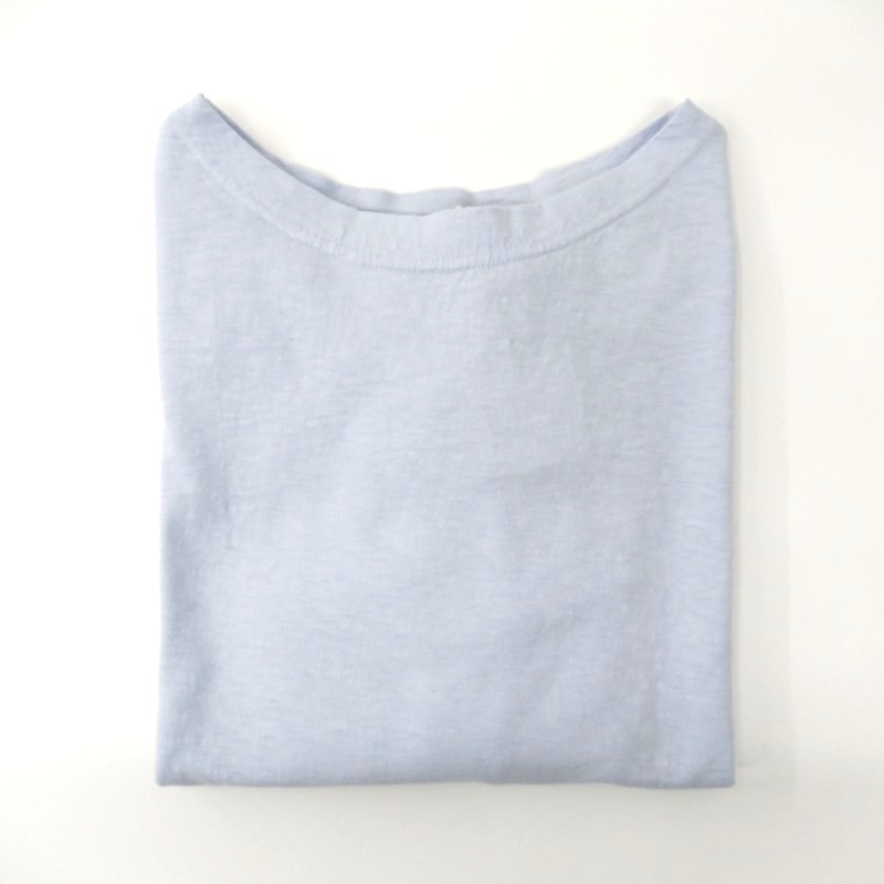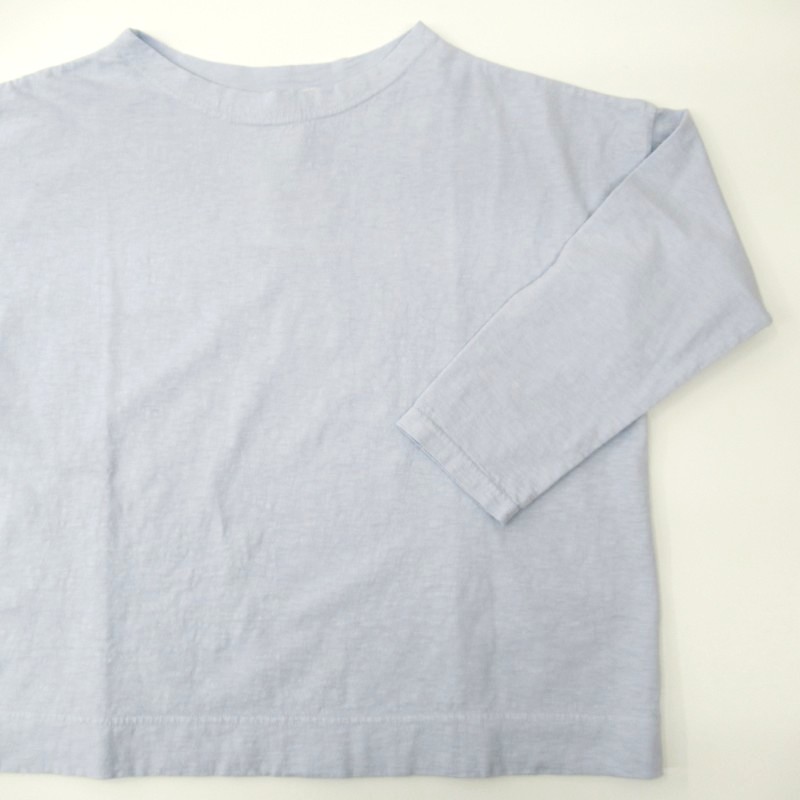 デイズオリジナル生地の19/バーフィル天竺を使用した、8分袖ボートネックプルオーバー。