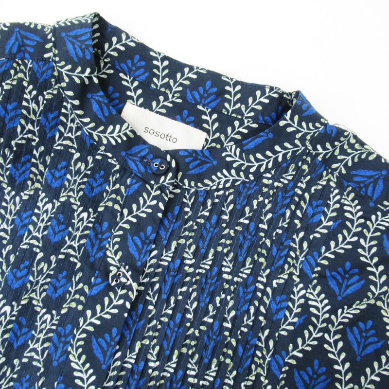 sosotto ツタ柄細ピンタックウエストドロストワンピース /NV65