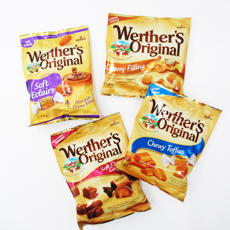 | サイズ | ・ヴェルタースオリジナル キャラメル 80g ・ヴェルタースオリジナル クリーミーフィリング 80g ・ヴェルタースオリジナル チョコトフィー 100g ・ヴェルタースオリジナル エクレア 100g |