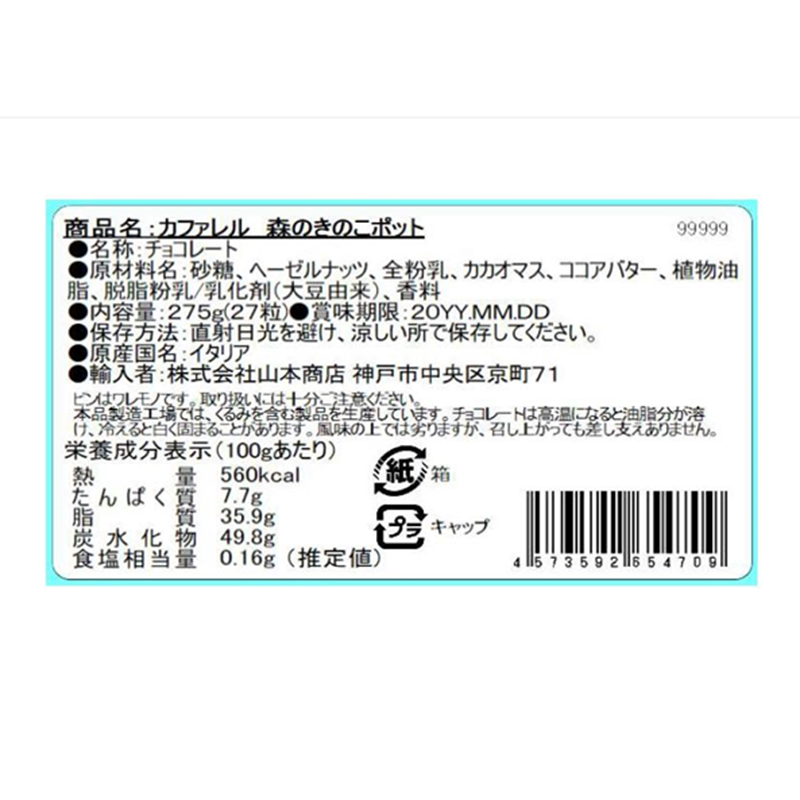 | 備考 | 【カファレル】 1826年にイタリア北部の街、トリノで創業。1865年に当時としてはまったく新しいタイプのチョコレート「ジャンドゥーヤ」を創りだし、以来、そのユニークで香り高くとろけるような舌触りを持つチョコレートは、ヨーロッパ各国のグルメたちを魅了してきました。長い伝統と高い技術によって、生み出されている気品ある味と香りは、現在、エレガントな贈り物として世界中の人々に愛されています。 |
