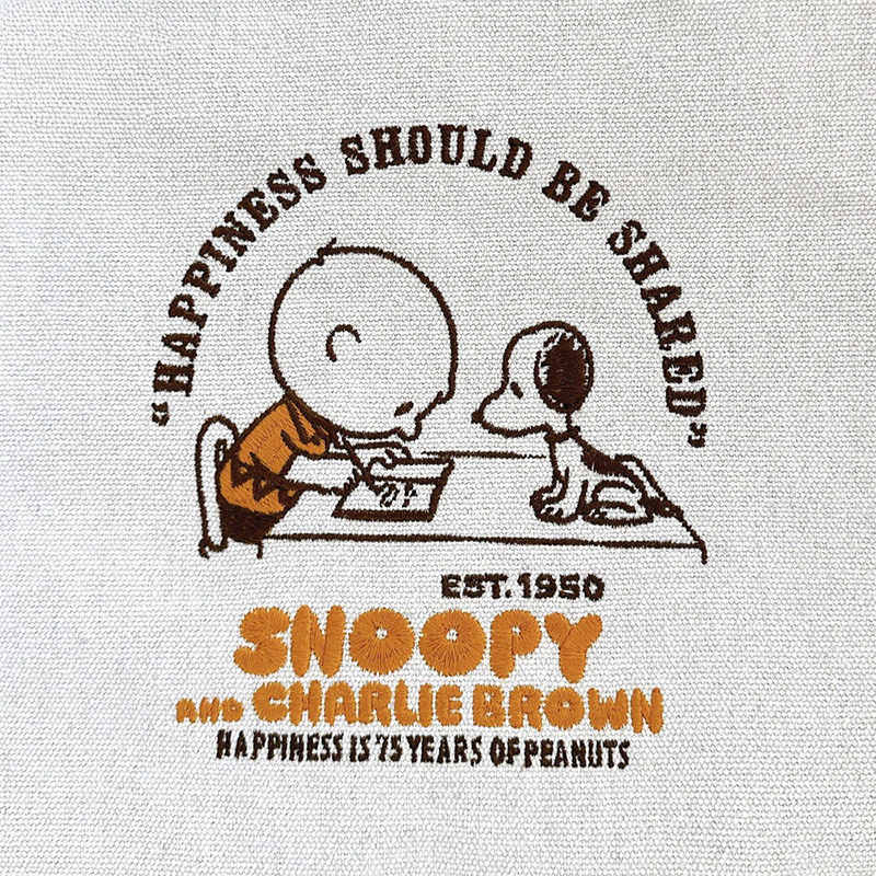 オトナも楽しんでいただけるこだわりのデザイン。表情豊かなスヌーピーの刺繍が愛らしいバッグ。