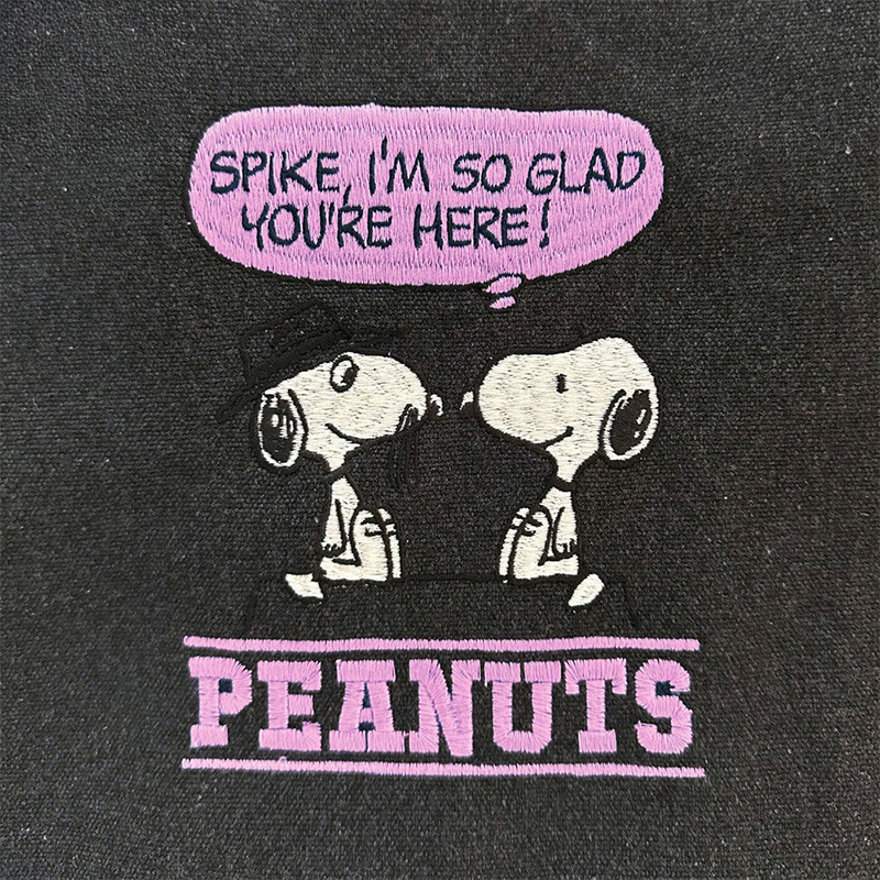 オトナも楽しんでいただけるこだわりのデザイン。表情豊かなスヌーピーの刺繍が愛らしいバッグ。