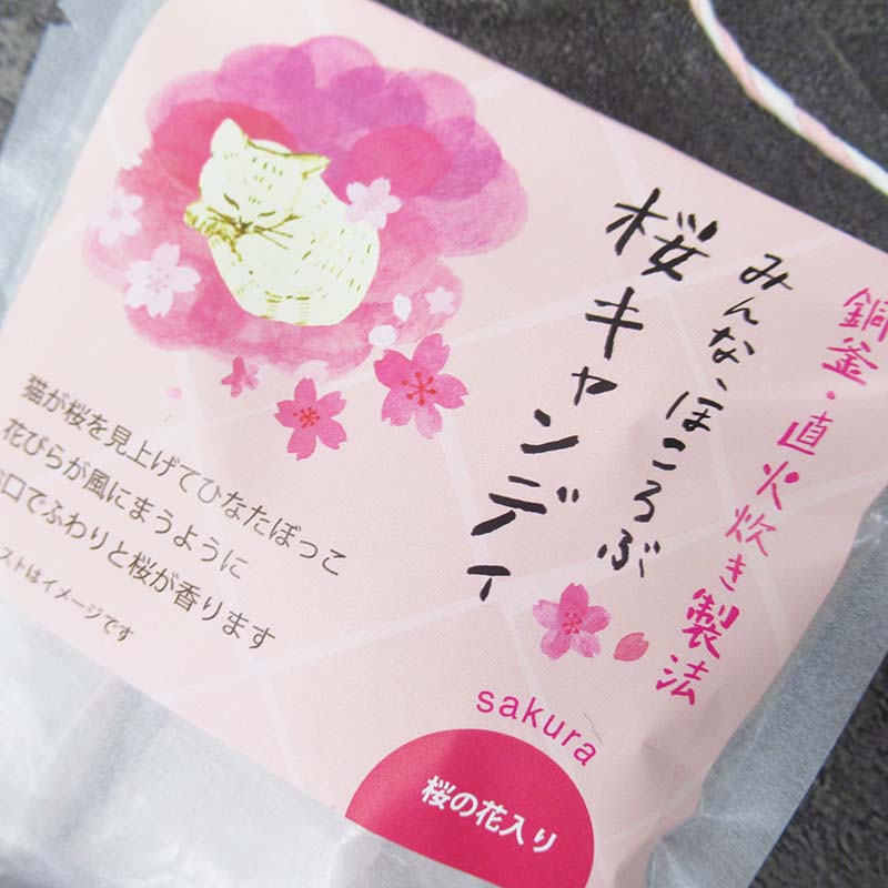 銅釜を使用し、職人が丁寧に作るキャンディ。桜の花の塩漬けを練り込み、ふわりと桜がかおります。