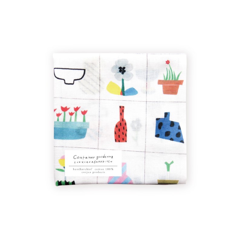 作家さんのイラストが全面にプリントされた、大判のおしゃれなハンカチ。そのまま絵画のように飾っても素敵です。薄手で柔らかい素材のため、持ち歩きやモノを包むのにも便利。贈り物にもぜひどうぞ。