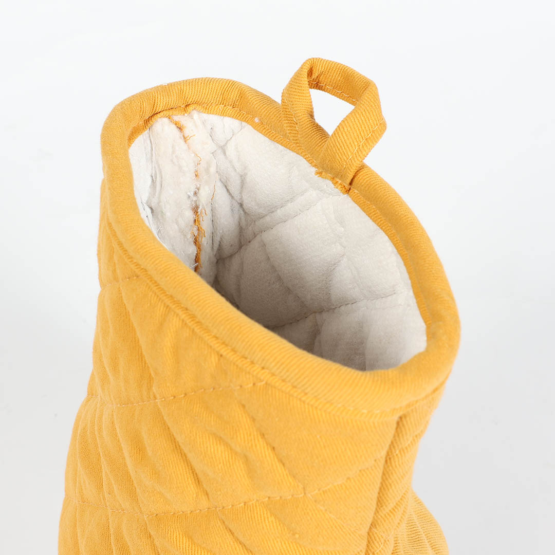 キッチンでもアウトドアでも頼れるタフさと、豊富なカラーバリエーションが魅力のミトン。 丸みを帯びた肉厚なフォルムが手にスッと馴染み、使うたびに心地よさを感じます。 耐熱温度は安心の180℃。愛らしいパペットデザインからは想像できない、確かな実力派です。 自宅での料理からキャンプ飯まで、シーンを問わず使えて映える鍋つかみです。