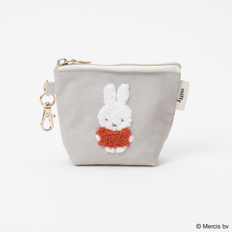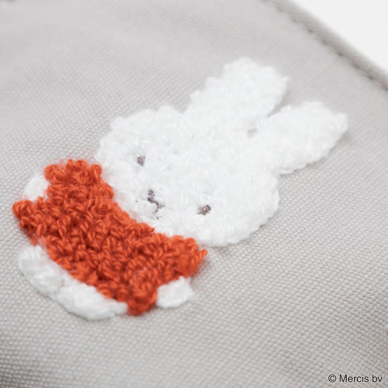 ミッフィーとイチゴやチューリップの可愛いモチーフを、サガラ刺繍で仕上げたポーチのシリーズです。