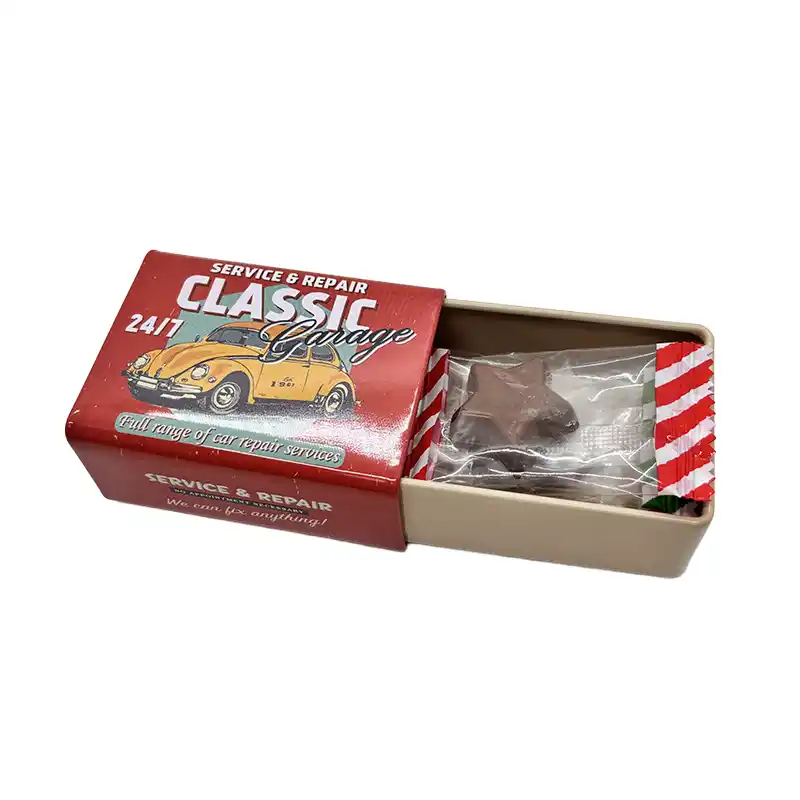 マッチ箱とほぼ同じサイズと形態の缶です。