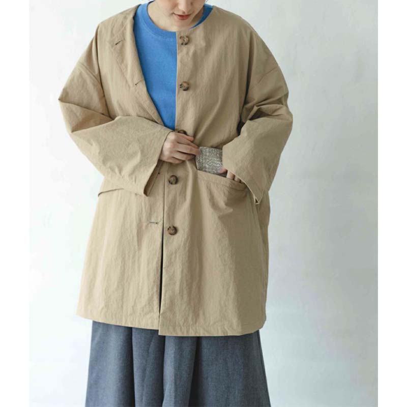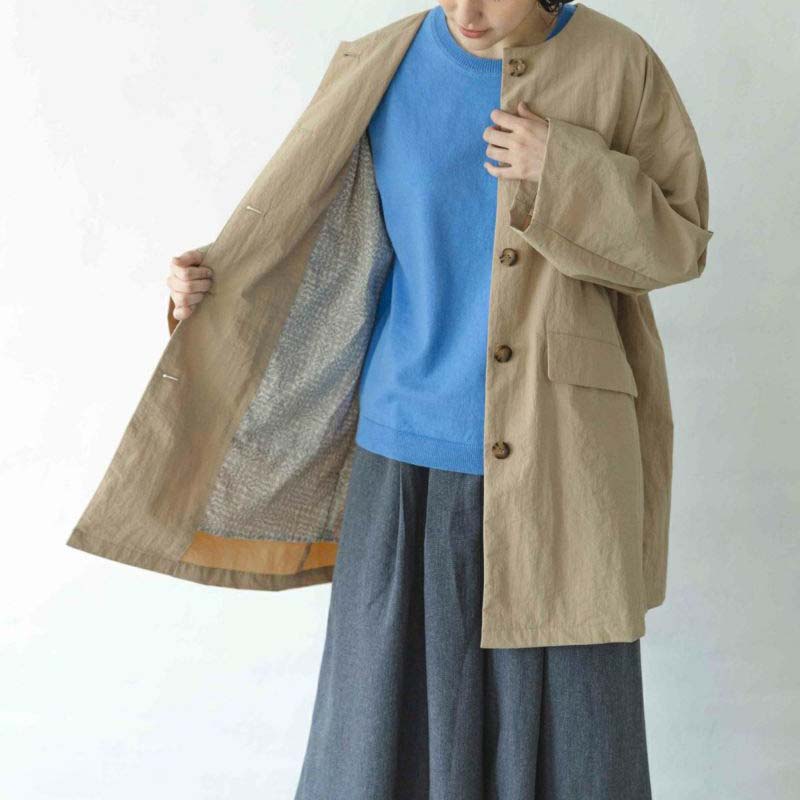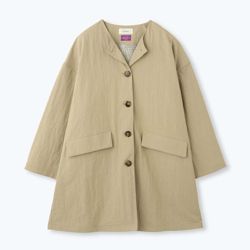 sosotto ナイロンLIBERTY裏地ノーカラーコート /BE20
