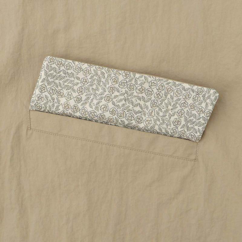 身頃裏地とポケットのフラップ裏にはLIBERTYPRINTの人気柄SleepingRoseを使い特別感をプラスしています。