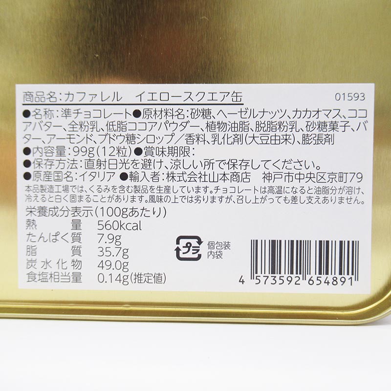 | 備考 | 【カファレル】 1826年にイタリア北部の街、トリノで創業。1865年に当時としてはまったく新しいタイプのチョコレート「ジャンドゥーヤ」を創りだし、以来、そのユニークで香り高くとろけるような舌触りを持つチョコレートは、ヨーロッパ各国のグルメたちを魅了してきました。長い伝統と高い技術によって、生み出されている気品ある味と香りは、現在、エレガントな贈り物として世界中の人々に愛されています。 |