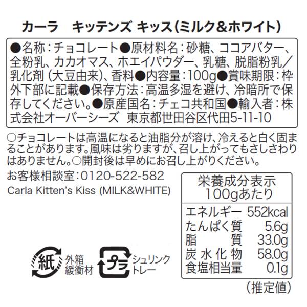愛らしい子猫の写真入りパッケージのミルクとホワイトのチョコレートです。20個入り。