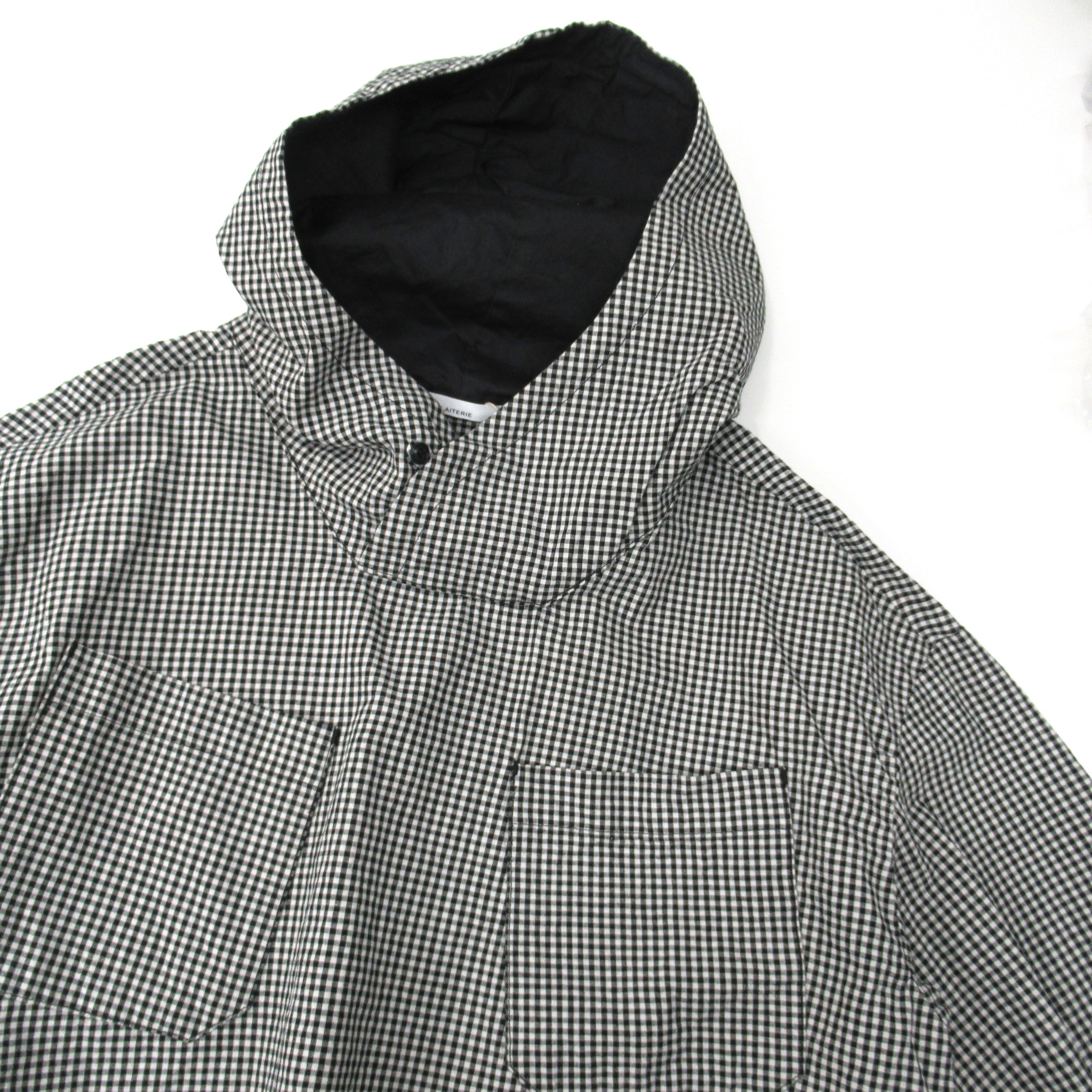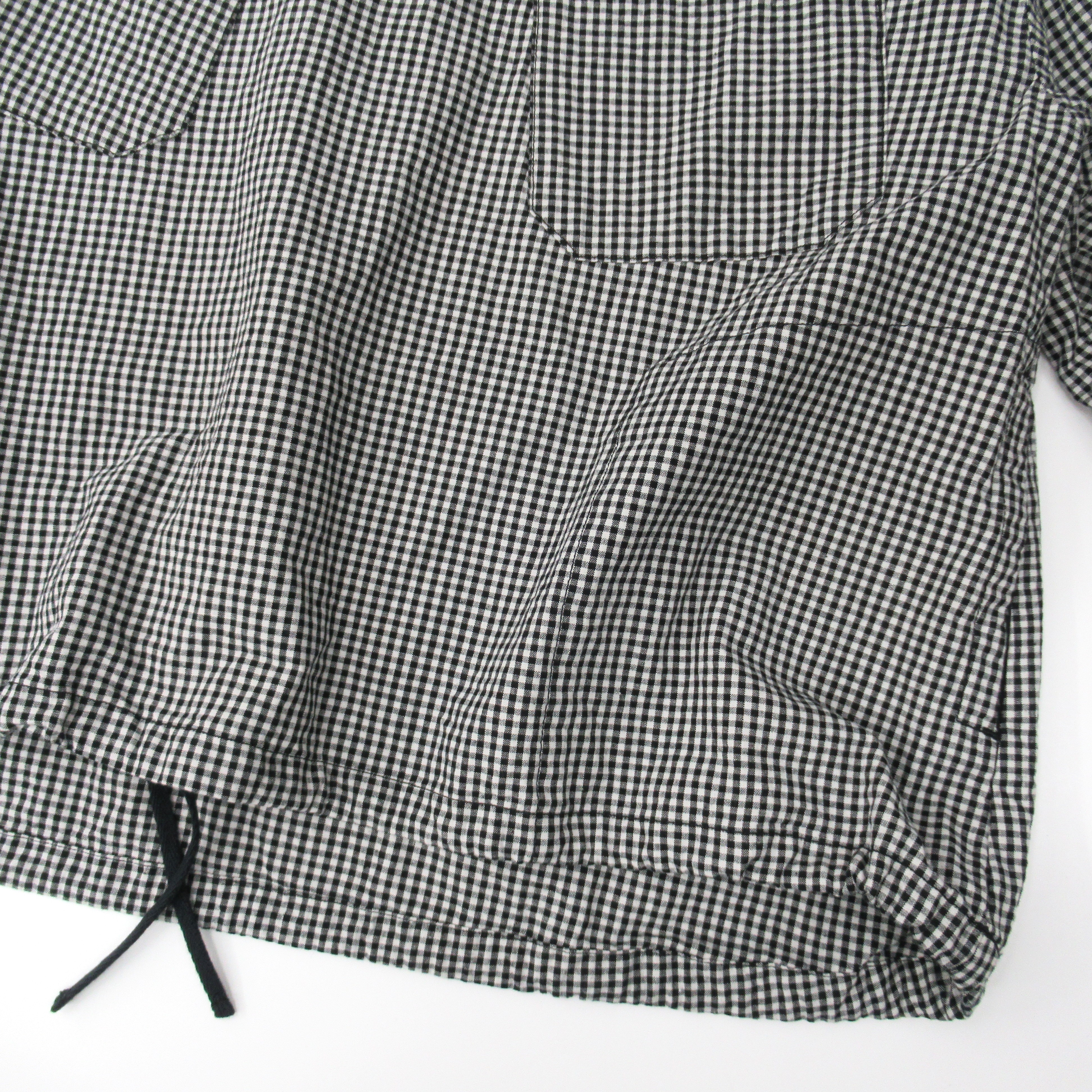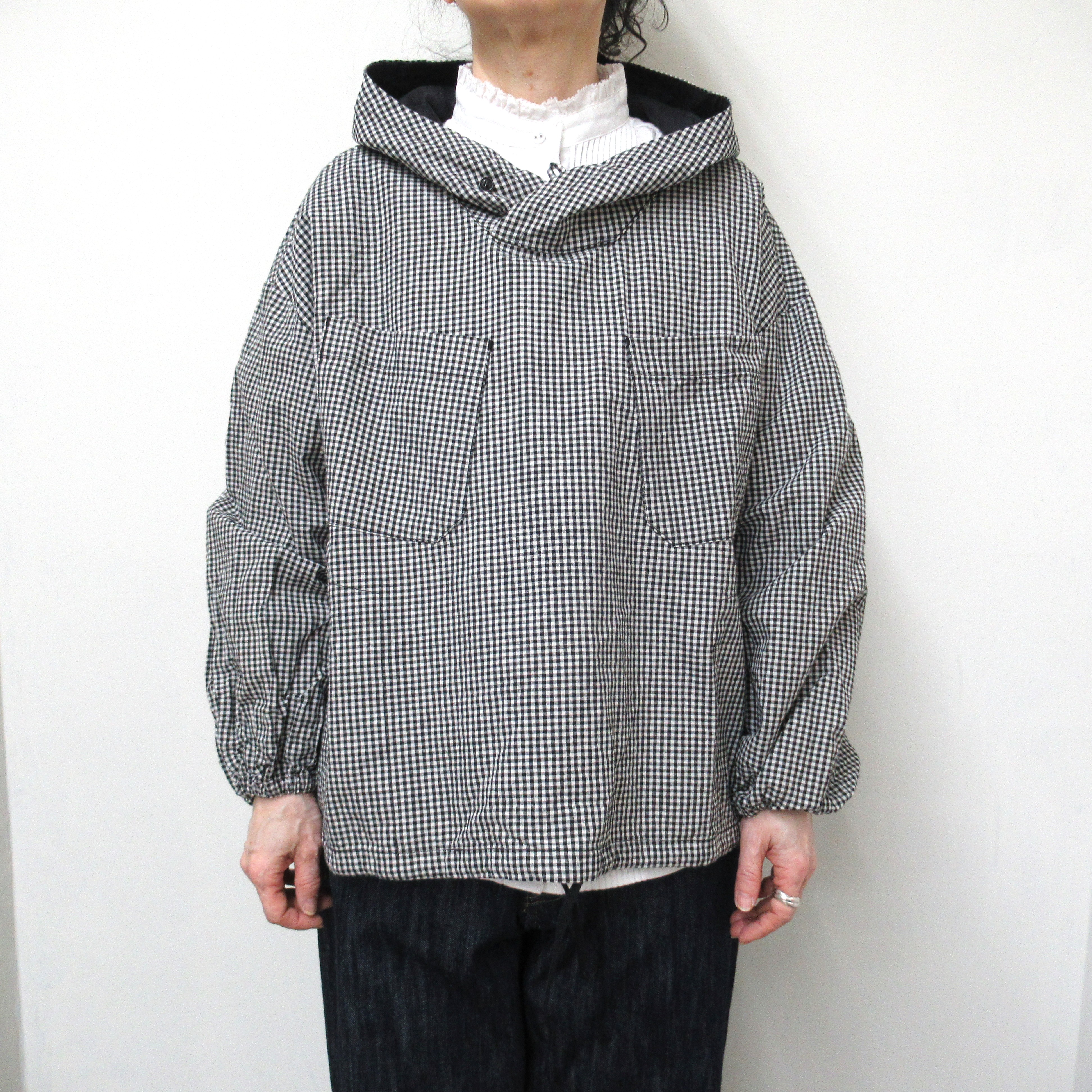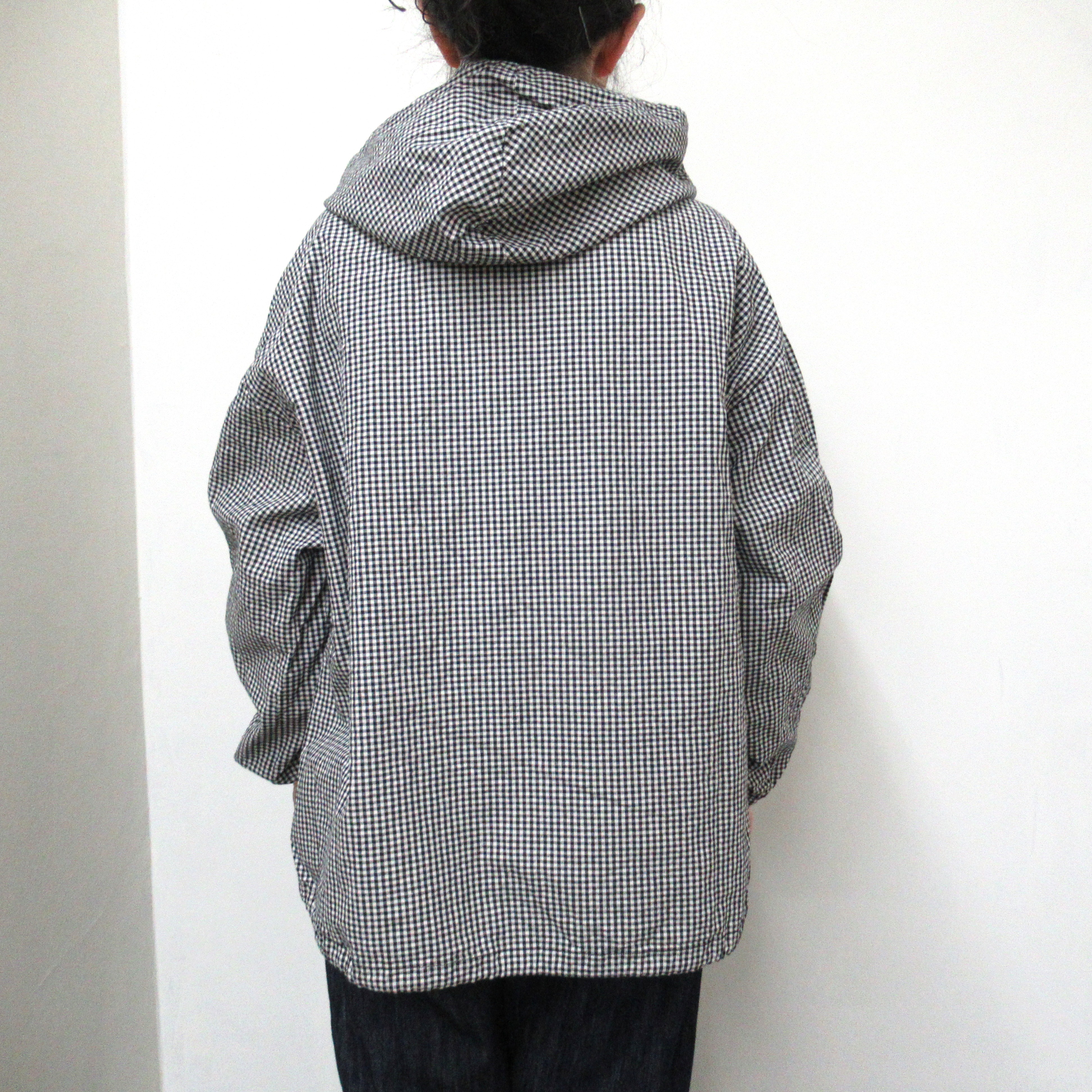 フロントのポケットがアクセントになったギンガムチェックのアノラックパーカー。