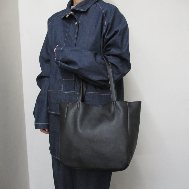 程良い質感のフェイクレザーを使用したA5トートバッグ。