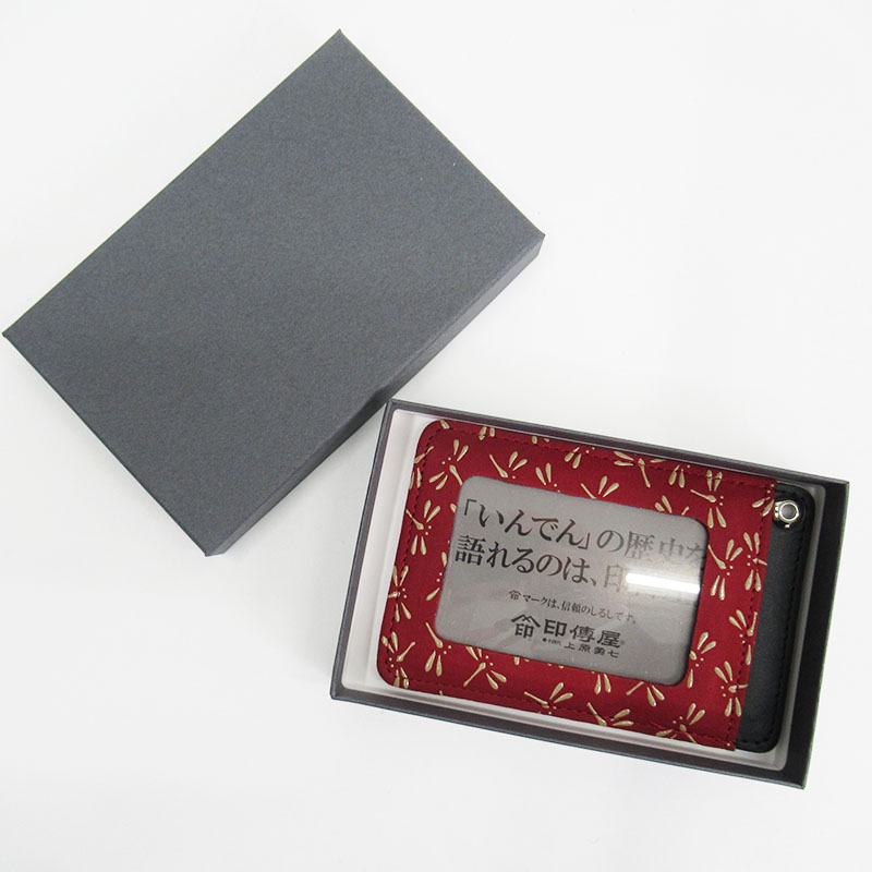 印傳屋 パス入F 【赤地x白】
