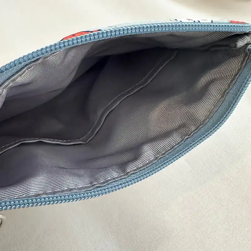 マチ無しのすっきりしたデザインのポーチ。メイク道具はもちろん、ガジェットやステーショナリーアイテムなどを、まとめるのにもおすすめです。